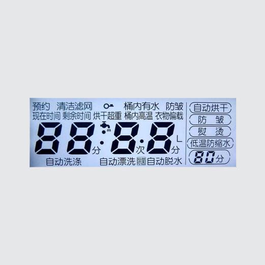 此顯示屏擁有超廣視角,6.5寸超寬顯示屏幕,結(jié)構(gòu)為:COG+FPC+BL,可應(yīng)用于各式洗衣機(jī)