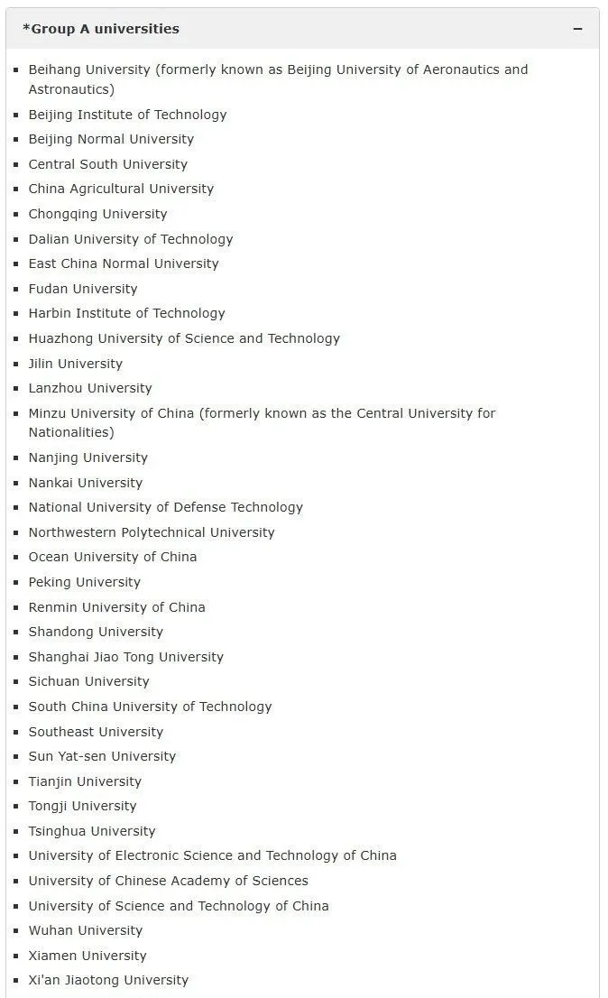 最近,劍橋大學(xué)在官網(wǎng)上首次公開了認(rèn)可的中國院校名單,將中國大陸高校分為了Group A universities 和Group B universities和其他三組(港澳臺(tái)高校另有規(guī)定)。
